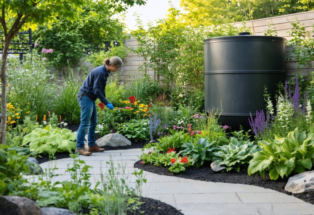 - Nutze Regenwasser im Garten, um Ressourcen zu schonen und Kosten zu sparen.