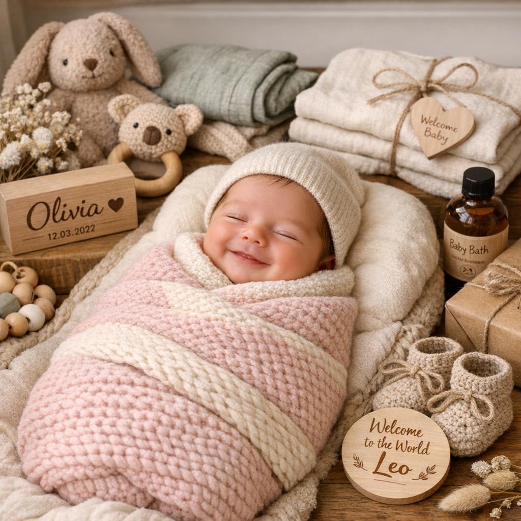 Die Einbindung des Babynamens oder Geburtsdatums verleiht Geschenken eine besondere Bedeutung. Personalisierte Decken, Kissen oder sogar Schmuckstücke für die Mutter bleiben lange in Erinnerung. Solche Geschenke zeigen, dass du dir Mühe gegeben hast und das Geschenk speziell für das Neugeborene ausgesucht wurde.